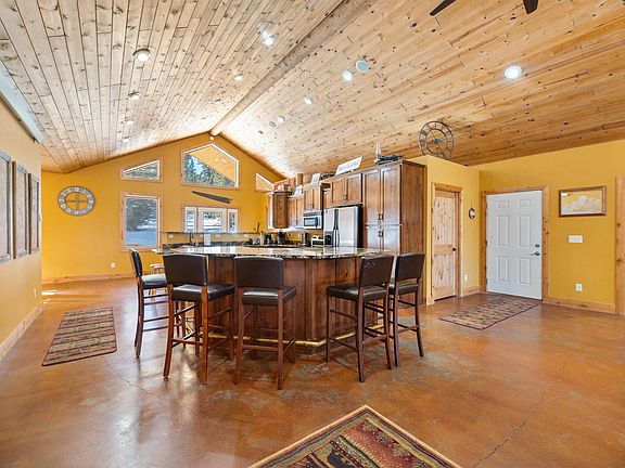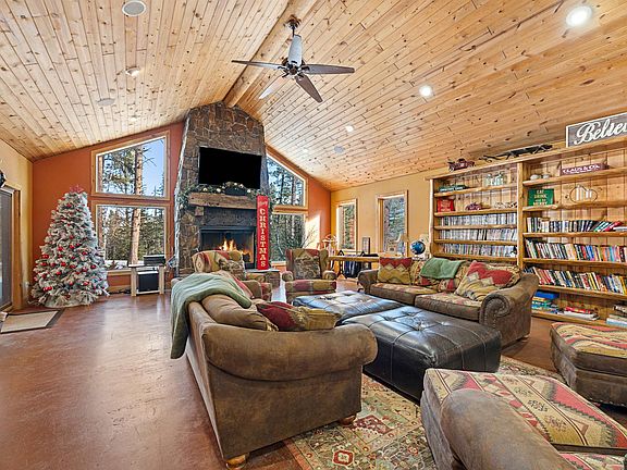 For more information, please contact Heath Gran 605-209-2052 or Scot Munro 605-641-6482 Great Peaks Realty. This turn-key 4-bedroom, 4 bath home features an open and bright space with a gourmet eat-in kitchen, granite counter tops, stainless steel appliances, beautiful custom wood cabinets and a formal dining area. Stained concrete floors, vaulted ceilings and lots of windows throughout the spacious main level! Living room has a beautiful, rock wood-burning fireplace and enjoy the built-in shelving! Master ensuite offers granite counter tops and tiled walk-in shower. For entertaining friends & family, the outside boasts ample covered patio space with a large concrete area that connects to the 3-car garage! You can also enjoy the views outside and watch your favorite on the big screen TV, all while relaxing in the hot tub!