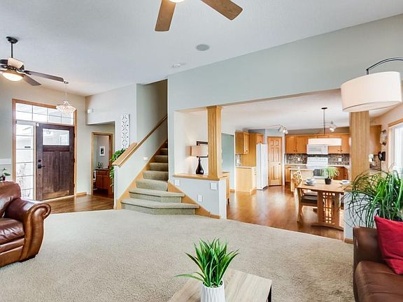 You will love the soaring ceilings and grand spaces in this amazing Lakeville home! The inviting main level features include: a spacious great room with fireplace that opens to the dining area and large U-shaped kitchen with hdwd floors, gorgeous backsplash, Silestone counters & center island. Upstairs includes the master BR w/ private master BA + walk-in closet and two additional BR's + guest BA. The walkout lower level is finished with a family room, ?? BA, 4th BR & plenty of room for storage!