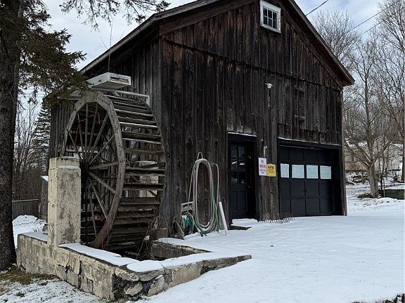 Carriage barnHistoric water wheelCozy heat coal stoveWalk-in closetsBay windowsBright dining roomDurable metal roof