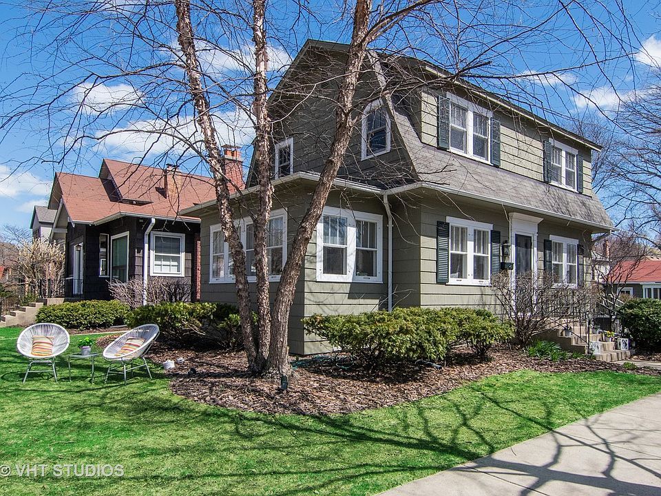 Amazing condo alternative during COVID-no assessments! Sitting pretty at Forestview & Payne, this home has a generous lot w/ unobstructed views from every light-filled room. The living room includes a cozy wood-burning fireplace surrounded by a wall of built ins. The dining room bay walks out to a large deck & yard. The kitchen is new from 2017, including all new SS appliances, backsplash, counters & white cabinets. And as an unexpected bonus, there are heated floors in the kitchen. There's a lovely view of the yard from the kitchen & dining room. French doors lead from the living room to the sunny family room/office. Upstairs, 2 large bedrooms & 2 updated full baths make daily life easy. The basement has a partially finished room & a large unfinished space. This classic Dutch Colonial features crown, built-ins & chair-rails. The windows upstairs are Marvin. The roof was new in 2015. New electric panel to be installed in early November. Stay cool all summer w/ SpacePac thru-out. Beautiful wood floors. The large yard is private thanks to hedge rows on both the north & south sides. Desirable NW Evanston, Lincolnwood School, social block. Perfect for those wishing to have outdoor space without a large home to maintain.
