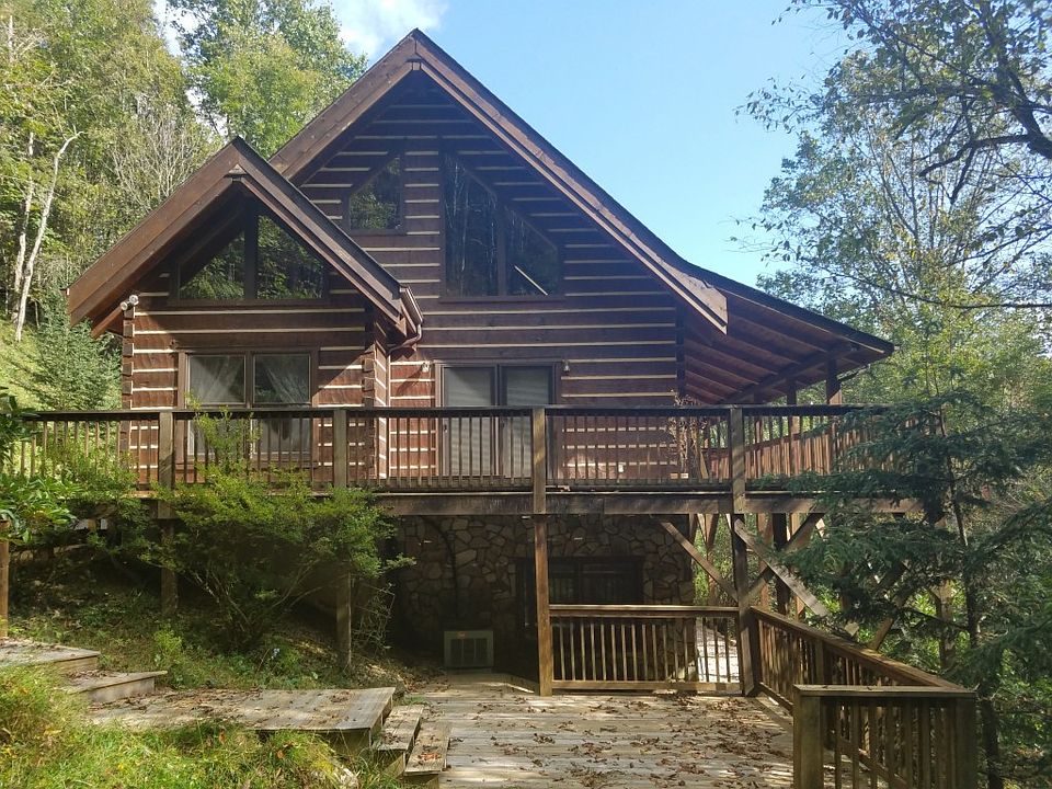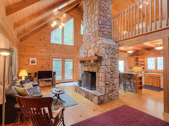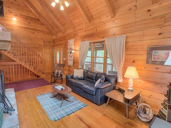 BEST OF BOTH WORLDS with this lovely log home on 12.68 acres with pastures for animals, mini farm, or just to enjoy. Home sits at the back of the property and boasts cathedral ceilings and open design and ample natural light. A floor to ceiling stone woodburning fireplace commands the living room. The kitchen has great flow and plenty of counter space along with a breakfast bar. A large bedroom and bonus room used as bedroom as well as laundry are on the main level. Upstairs is an open loft and large master suite with vaulted ceilings. Basement is finished and has a wood stove for additional heat. Large two car garage enters at basement. Driveway also extends behind house allowing entry to kitchen. Home is a well-built Logs America home. There is nice view potential from the front porch of the home. Down the driveway is a barn with drive up loft and two stalls. Barn has its own well. Drive crosses the creek to the pastures. There is a storage shed, large run in shed and smaller run in on the property. Located less than 20 minutes to Boone. Home is listed as 2 bedroom due to septic size and has three rooms used as bedrooms.