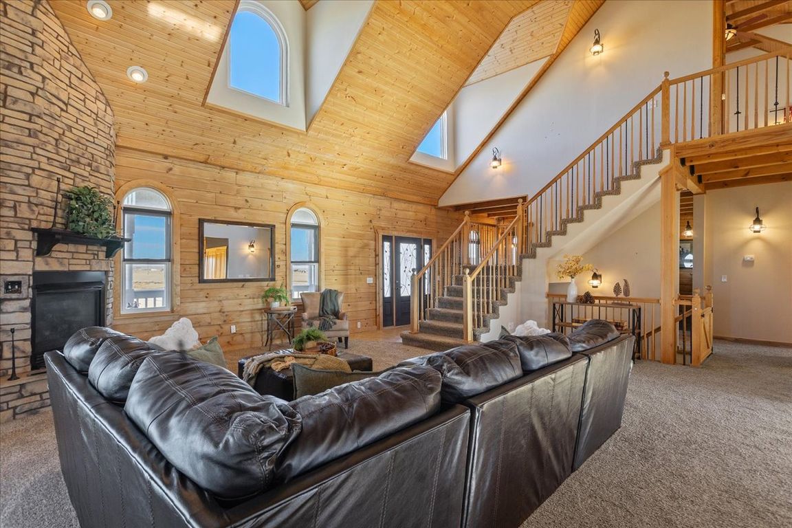 Stunning log homeBarn and shopSteel sidingSand arenaExpansive primary suiteNew roofSoaring ceilings