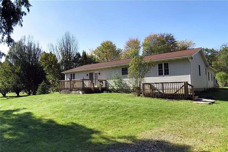 Stone throw to Morraine Park. Super access to Lake. 2.3 level acres. Wide open floor plan splits master suite from secondary bedrooms. Large Contemporary Ranch with 4 garages. 32x40 pole building (a workshop paradise). Apple and pear trees, perennials abound. 250 feet from road. 1 mile to Route 422, 6 miles to Route 8 (stone house). Very quiet and peaceful area.