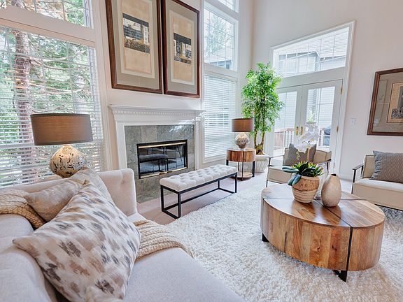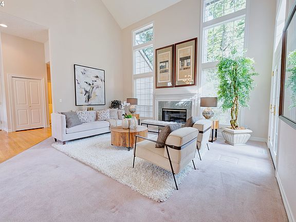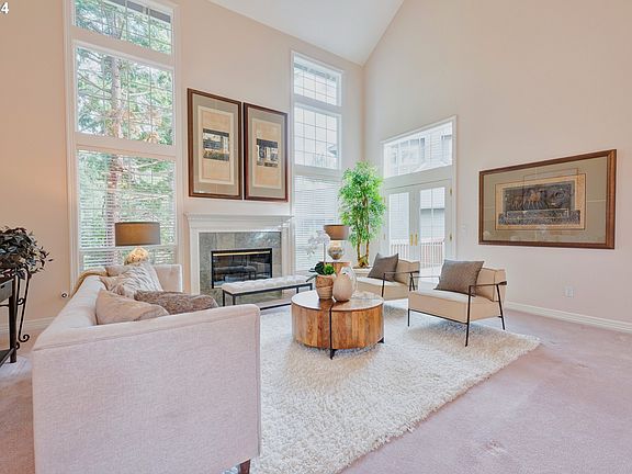 Get ready to fall in love with this extraordinary gem! A truly inviting space welcomes you as you enter through the front door. Serene views & natural light streaming through the floor-to-ceiling windows, combined with the impressive 20-ft ceilings on the main level, will instantly capture your attention – a rare feature you'll not find in new homes today! The Living Room offers an elegant gas fireplace & French doors that lead to an inviting deck. The gorgeous Kitchen is sunny & bright with its grand tall ceilings, spacious dining-nook area, solid hardwood floors, a roomy pantry, new quartz countertops, new appliances & refaced cabinetry with soft close doors & drawers. Enjoy relaxing, grilling & dining al fresco on the upper deck looking out to a serene, unobstructed view, as there is not another home built behind. What makes this home even more desirable is the luxurious, inviting Primary Suite on the main floor with a beautifully updated bathroom that includes a deep soaking tub that will soothe and relax you after a long day! The suite also includes a spacious walk-in closet. On the lower level you’ll enjoy a cozy family room with a gas fireplace & lovely built-in features for your audio/visual equipment. There are 3 more spacious bedrooms - one of which includes a sliding door to the lower deck – providing another great outdoor living space. Also on the lower level is a huge walk-in storage room - perfect for storing numerous items, along with a door that conveniently opens to the fenced backyard. The wonderful backyard features a lawn area that meanders around the mature landscaping and exudes a feeling of peace & beauty inviting you to relax and breathe! You’ll be thrilled with tons of storage throughout the home & a 3-car garage with abundant cabinets to keep everything organized. NEW features include: a roof, Hardi-plank siding, exterior paint & a 75-gal H2O heater. All this along with outstanding West Linn Schools make this a superb home!