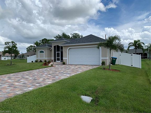 Beautiful brand-new 2020 home with a great deal of upgrades. The seller has added a new fence along with numerous upgrades inside this very beautiful home that you will want to come see for yourself. Porcelain tile throughout, granite counter top in the kitchen and baths, high rise ceilings, impact resistant windows and doors, high efficiency AC, wood kitchen cabinets, ceiling fans throughout the home. Stainless steel kitchen appliances. Automatic sprinkler system and located in a great neighborhood and close to everything Cape Coral has to offer.