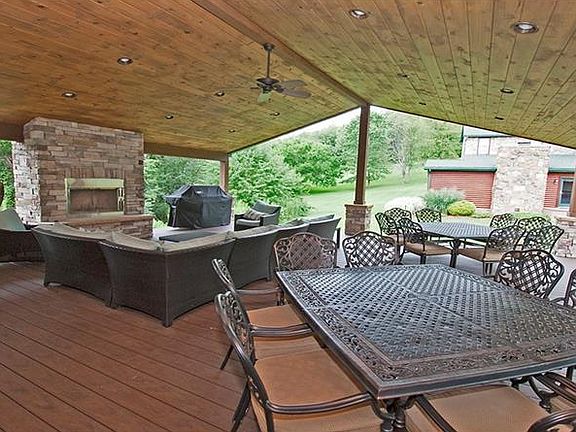 Picturesque Tranquility in all Seasons! Serenely encircled amid 14 acres of lush natural beauty, meticulous landscape, and abundant wildlife with breathtaking views of gently rolling countryside is this spectacular cobblestone & timber rustic farm-styled estate lavished in uncompromising quality and radiating one-of-a kind appeal. Grounds host richly-appointed masterfully crafted 4200 sqft main residence constructed by premiere builder as his personal residence w/2attgrg; a complimentary stack stoned 75'x24' guest house w/kit, LR, bath, and expansive outdoor entertainment-friendly venue warmed by stone fp w/8grg; and 54x36' outbuilding for equipment/boat/trailer stg. Main residence showcases unique architecture w/dramatic cathedraled wood ceiling in sprawling sunken FR w/2nd floor-to-ceiling stone fp. Embellished chocolate glazed maple kit, luxurious owner suite w/spa-inspired travertine bath/exaggerated 2headed shower,serpentine deck. LLGR,den,9ceilings,solidwooddrs,oilrubbedbronze