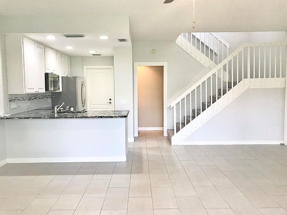 This adorable townhome is perfectly located overlooking the lake and close proximity to the wonderful amenities that RiverWalk has to offer! The living area downstairs is tiled and the kitchen has stunning granite counters and backsplash. The half bathroom is located off the living room. The principal bedroom is large and has an en suite bathroom with double sinks, walk in shower and huge walk in closet. The two guest bedrooms share a bathroom and the laundry facilities are conveniently located on the second floor. The living room sliders lead out to a charming covered screened patio which has a peaceful view of the lake. Xfinity cable and high speed internet is included in the rent as well as lawn care and full use of all RiverWalk amenities.