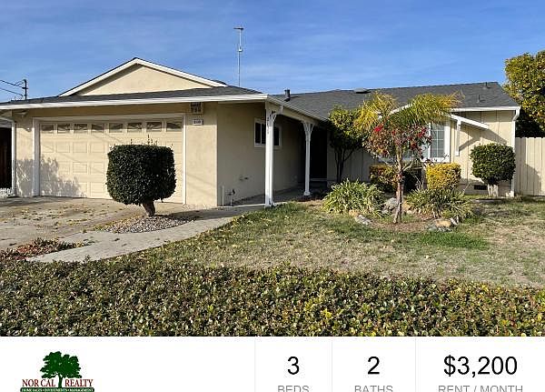3 bedroom, 2 bath house with 2 car garage. Beautiful home, with updated kitchen Huge family room with bonus room/den. Stainless Steele appliances, quartz counter tops with tile back splash. Bedrooms with lots of closet space Washer & dryer hook ups. Great location, walk to Chabot College, shopping, dining and great freeway access. Please call our office. Nor Cal Realty, Inc. 22744 Main Street Hayward, CA 94541 Owner pays garbage