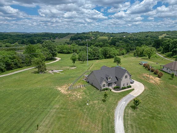 All brick construction on 5.47 acres in Wilson County. Close proximity to downtown Nashville and BNA Airport. NO HOA! 3 bedroom, 3.5 bathrooms. Living room has massive soaring ceilings and gas fireplace. Office with closet (could be 4th BR), huge bonus room, separate dining room & flex space upstairs. 2 car side entry garage with custom epoxy flooring. Custom cabinets, tile, hardwood floors throughout, granite countertops, and stainless steel appliances remain including high end washer and dryer. Amazing outdoor living space with covered porch, pergola and HOT TUB! Partial fenced back yard with 12x26 barn with loft. Incredible views. DTC FIBER internet available. Super clean and move in ready. 1% of loan amount up to $5,000 in closing costs with use of preferred lender.