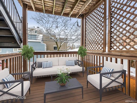 Pristine 3 bed, 3 bath duplex nestled in Roscoe Village & Level 1+ Audubon Elementary District. Enjoy a spacious, prvt rear deck, 2 (tandem) assigned parking spaces & 2 levels of spacious, thoughtfully laid out living! Open concept main level offers an opulent living room outlined by oversized windows & exquisite French doors to Juliet balcony. Lovely gas FP set in stone, perfect for winter in Chicago. Crisp white kitchen to follow complemented by an elegant archway & crown molding. Enjoy modern cabinetry, backsplash, prem granite counters, stainless GE profile appls incl newer refrigerator & stove. Well-appointed dining area off kitchen. Generously sized master suite offers a large closet & access to the prvt deck. En suite complete with Whirlpool tub for relaxation. Additional spacious bedroom & full bathroom conclude the main level. Lower level offers an expansive family room, 3rd bedroom w/ WIC, full bath & laundry room. Moments to dining, Brown line, interstate, Mariano's & more!