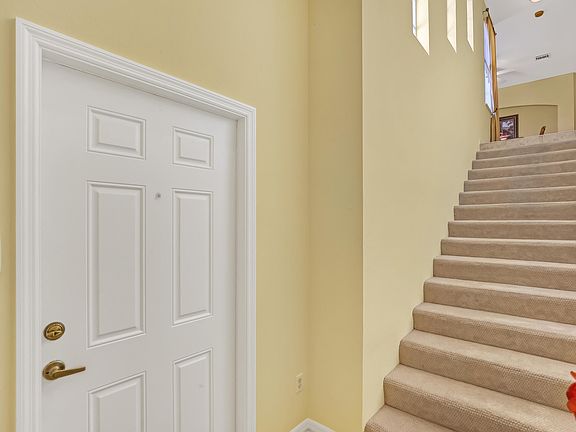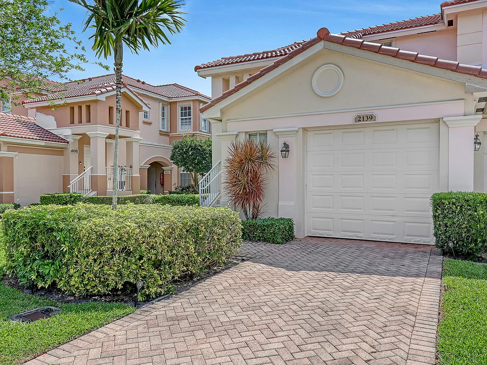 Located in 55+ community with new roofs and paint in 2024, this 3-bedroom, 2-bath coach home exudes pride of ownership in every detail. Nestled on the second floor, it offers a private retreat from the world below. You have the option to enter through the front door or directly through the garage, adding to the convenience and security of the home.Inside, an open-in concept floor plan welcomes you with soaring ceilings that create a sense of spaciousness and airiness. The kitchen is a chef's dream, featuring rich wood cabinets, elegant granite countertops, and modern stainless steel appliances. Ample cabinet space, a pantry, and a breakfast bar ensure plenty of room for storage and meal preparation. he adjacent breakfast area overlooks the living space, making it the perfect spot to start your day. The bedrooms are thoughtfully arranged in a split floor plan, offering privacy and comfort for guests or family members. An indoor laundry room adds practicality to daily chores. Step outside onto the screened patio overlooking the water and be captivated by breathtaking sunsets, providing the perfect backdrop for relaxation and unwinding after a long day. Other features include a new roof 4/2024, AC 7/2018, and accordion hurricane shutters. Located in the gated community of Mayfair, residents enjoy access to a range of amenities including a swimming pool, fitness center, and clubhouse. While there's no age requirement to purchase within the community, at least one resident must be 55 or older, ensuring a peaceful and serene environment. Additionally, full-time residency is restricted to those aged 19 and above. Conveniently situated within walking distance to the Wellington Amphitheater, food trucks, boardwalk, shops, and restaurants, this home offers the perfect blend of comfort, luxury, and convenience for those seeking an exceptional lifestyle. The unit can be sold completely furnished or unfurnished.