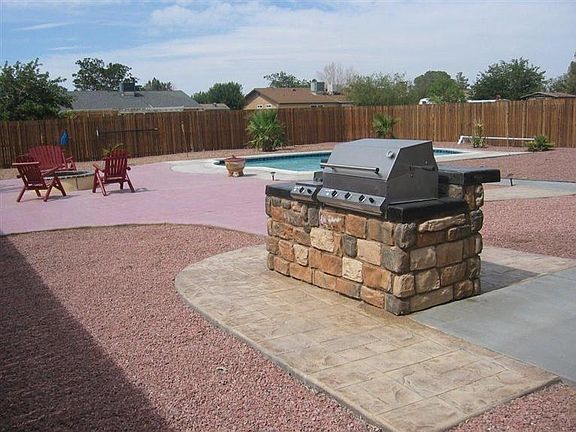 THIS IS A PARADISE IN THE HIGH DESERT. Big POOL Cute House offers built in BBQ, Firepit, covered patio, all chain link fence in the back, wood fence area in the back, wall brick with automatic iron gate in the front, 3bedrooms, 2bathroom, all remodeled. New paint, new carpet, new tile, granite counter tops, full rock landscape. 2 extra storage in the back yard. THIS IS A MUST SEE...