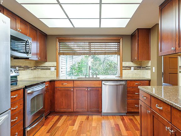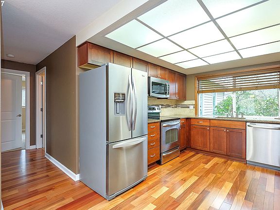 NW Portland Updated Ranch! Easy access to Hwy 26. 4 bedroom home w/ 2 baths. Beautiful hard wood floors & updated details through-out home. Kitchen includes eat area & pantry. Formal sunken living room & formal dining room. Family room with hi-ceiling, brick fireplace, & slider to back patio. Master Suite w/ updated bathroom & double closets. Backyard w/ large side yard, covered patio & tool shed. 2 car garage. Park across the street!
