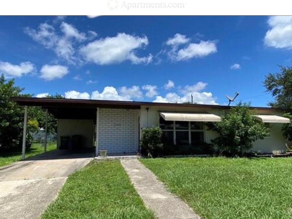 This 2 bedroom concrete block home, with carport. There are terrazzo and tile floors throughout. The 14 x 9 lanai has been enclosed and is the extra space to have. You'll appreciate the convenience of the interior laundry room. Additionally, there is a 10 x 8 storage room with cabinets and window A/C...perfect for your at home workshop (this is also additional space not included in the house size). Relax on the covered porch overlooking the partially fenced backyard. Convenient to medical facilities, shopping, dining, golfing, fishing, and boating. Make your appointment today.