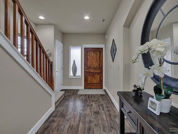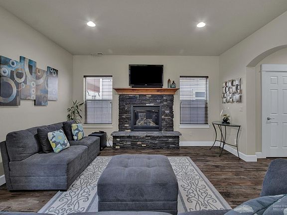 Shows like brand new...just better! This lightly lived in home features a stunning entryway, an open living area concept including a cozy gas fireplace with stone surround and beautiful wood look laminate flooring, The kitchen includes SS appliances, solid surface counter tops including a full back splash. Dine while enjoying your beautifully designed back yard! The gorgeous and private master suite offers vaulted ceilings, walk in closet, soaking tub, and tiled walk in shower. Neighborhood amenities include a community pool and a 4-acre park w/ playground. COE to be determined on seller finding a replacement home.