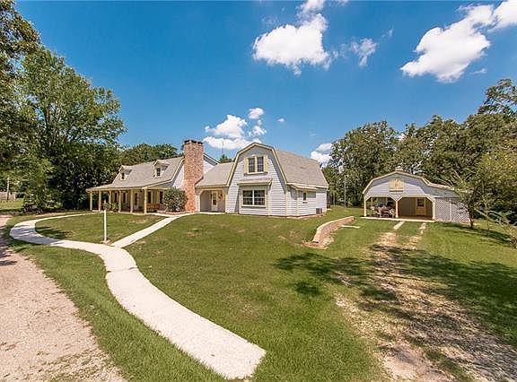 Country home on 10 acres. Master w/fpl, built-ins, jetted tub, sep. shower. Kitchen has brkfst bar, granite, dble oven. All new SS appliances! Living rm/den w/bar. Huge fireplace in dining/den. Screened exercise pool. 20 KW propane generator. 4275 sf workshop plus 1800 sf studio apt. above. 2BR/2BA mobile home on property. Ponds & fruit trees. Carport w/storage. House plans avail. See attachments for amenities. All appliances including washer & dryer stay with house, apartment and trailer. 4 new A/C's.