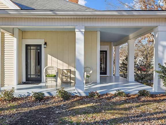 Historic 1930’s home reimagined for modern family living within walking distance to parks, farmers market, restaurants, schools, shopping and a vibrant downtown square! Large columned wrap-around porch provides entry through leaded glass doors into soaring 11’ ceilings of light-filled open spaces - Living Room, Kitchen and Dining Room.  Architectural design throughout the home works with existing exposed brick, chandelier lighting, detailed woodwork and elegant modern paint colors to create a lux feel. The primary bedroom and bath feature ample closet space and large original windows. Primary bathroom is completely remodeled with new clawfoot tub & tiled walk-in shower. Two additional bedrooms/baths ensuite ensure space and privacy and include private entrances to the back yard. Three original fireplaces can be utilized with electric fireplace inserts or can be converted to gas. Kitchen features gas range; double convection ovens; panel built-in dishwasher; glass cabinets; quartz and butcher block countertops. Laundry room design doesn’t disappoint featuring beautiful built-in cabinetry. Large privacy fenced back yard with drive in access on two sides.  Mature trees. Two large storage sheds. Carport. Updated electrical, plumbing, insulation, water heater and HVA & Excellent roof.  Located In Character District (CD) of Columbia. Can be used as SFD, Duplex, or Short Term Rental. Flood insurance not required.