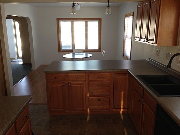 For Rent: 4 Bedroom 2 bath house with 2 car garage. Open floor plan, 1 bedroom and bathroom on main floor, 3 bedrooms and full bath on 2nd floor. Large open space in basement with wash/dryer hookups. Tenant responsible for all utilities.