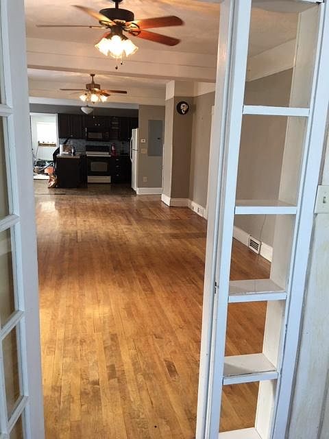 This is the main floor apartment in a cute 1920s home. There's a sweet fully fenced backyard flagstone terrace, wood floors in much of the house and a recently renovated kitchen. 2 bedrooms with lots of closet space and one bonus room plus closed in porch, breakfast nook, laundry/mudroom, and one car garage for plenty of storage or work space. Close to park, downtown and schools. Just minutes from the river. Dogs will be considered. No cats, no smoking, no drugs. Tenant pays utilities. Background check for adult applicants (cost $25 for check)