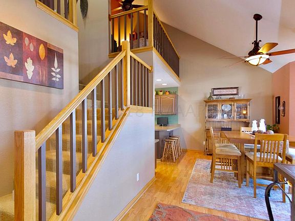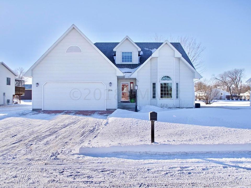 Pretty & unique 1-1/2-story home is move-in ready! Three bedrooms, 2.5 updated baths, 2 loft areas, large living room with gas fireplace, basement family room. Large deck, landscaped yard, 4-stall (2 deep) heated garage, and shed. Newer roof, windows, water heater. Steel siding, lots of storage. Low specials.