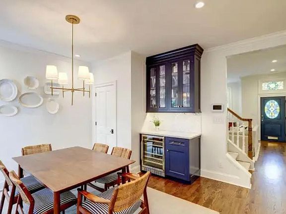 Exceptional Victorian in the heart of Capitol Hill! Beautifully renovated with bespoke finishes & the finest craftsmanship. 3BRs, 2.5BAs on 2nd & 3rd floors. Light-filled 1st floor features a spacious living room w/ custom built-in cabinets. Dining room w/ bar & wine frig, custom cabinets & pantry. Spectacular kitchen w/ custom cabinets, quartz, high-end SS appliances. 2 nicely sized BRs on 2nd floor. BA w/ spa-inspired Carrara marble tiles, Kohler fixtures, Quartzite dual vanity tops. 3rd floor optional primary w/ ensuite BA & custom closet, Carrara marble tiles, vanity, shower. Fine oak floors, bespoke & upscale lighting throughout. Top floor balcony w/ expansive views, including of LOC dome & surrounding + seasonal view of Capitol Dome. 93/100 Walk-Score Renter is responsible for all utilities. No smoking. Street parking (zone 6). Long-term lease (6+ months).