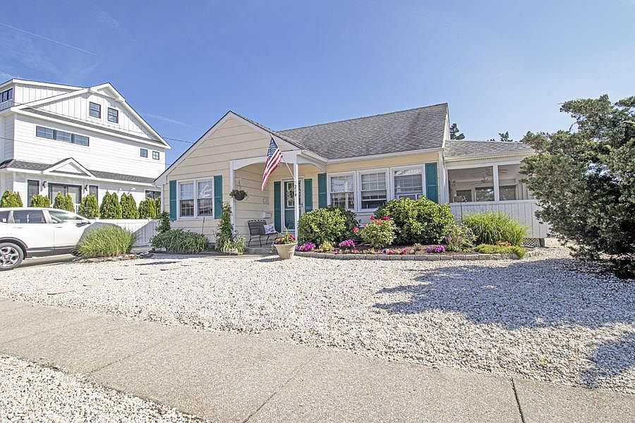 This quaint, Avalon cottage is nestled in a great location on one the quietest streets of 7 Mile Island. Situated just one lot in from Dune Drive, this 60' x 110' property offers wonderful privacy, plenty of off-street parking, and a massive garage / cabana in the southern exposed, rear yard. The 1968 built home has been lovingly maintained with the owner using the property year round. The first floor offers multiple living rooms, an updated kitchen, and slider access to a beautiful covered and screened-in porch. The porch then walks out to a expansive deck that overlooks the rear yard (with plenty of room for a pool), complete with a motorized awning that allows your guests to escape the afternoon sun. A massive, elegantly outfit rear yard garage currently serves as a man cave, offering another living area, another sleeping area, and tons of storage - there is also a separate rear yard storage shed. Back inside, each of the two floors offers two bedrooms and one full bathroom. One of the second floor bedrooms offers two doors with access to additional attic storage. The side yard driveway was recently repaved and offers all of the off-street parking spaces you could ever need. If you are searching for a place to build a new property, this site would be ideal. A new home would offer beautiful vistas of the high dunes, a peak of the bay, a southern exposed rear yard, and the opportunity to construct up to 4,620 square in a sensational neighborhood. Whether you are looking for a great starter shore house or a site to build a new home, look no further than this very special property.