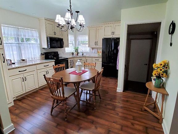 4 bedroom, 2 Bath, 3 Garages! Tons of Updates! Check out all the updates in this move-in ready home! In 2006 the A/C unit was replaced. In 2007 a new single attached garage was added with a new cement floor, insulation, finished, floor drain & a back service door to backyard. Also in 2007 the owners worked on the outside of the home & put on new cement board siding (insulation under siding), put in all new windows (Schiebout Marvin Vinyl windows), new shingles on new garage roof, added gutters & gutter guards, poured a new cement drive & sidewalks and added a no-maintenance front porch. In 2011 the owners added a new 24 X 26 detached garage through alley with pull-down stairs to the attic with a floored area for more storage, and new shingles. One side used as a workshop that has a workbench, cabinets and is heated. The owners also put on new shingles on the house in the same year. In 2012 the sellers did a total remodel in the kitchen (Joel Jongerius) with sheet rock, new cabinets with drawers (Century Cabinets), LVP flooring, counters, undermount sink, pull-out faucet, appliances. They continued inside the home and updated the main bathroom & put in new carpet in the living room, dining room, bedroom and hallway. Also replaced and added new white doors & trim. The main bathroom received an updated with a new tub/shower, new cabinets, linen cabinet sink/counter, faucet, and lights. In 2014 a no-maintenance backyard deck (Joel Jongerius) was added. In 2015 the furnace was replaced. Thrasher tiled, added a new sump pump & radon mitigation. Basement was updated with drywall/mud/tapping, paint in two bedrooms & epoxy on floors. Sellers finished off attic area to make a craft area & family room. In 2016 a Sun Setters awning for backyard deck was added. 2017 New Water Softener 2018 Sprinkler system in front yard added & a new sewer line from road to house put in. 2020 two basement egress windows added. 50 Gallon Marathon H20 heater & 2017 water softener.