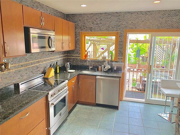 1 family detached home on 25 x 100 lot. Pvt drive. Front yard and large manicured back yard with deck and privacy. Fully modernized. First floor has open concept floorplan with LR DR and Kit with half bath and exit to backyard. 2nd floor has a full bath and the master bedroom & an additional bedroom. Third floor has 2 bedrooms with full bath. Full finished basement with heated floors and full bathroom. Heated towel racks in all bathrooms. The Central A/C system has an additional function to provide supplemental heat through forced air. It is a split system with ducts on the 3rd floor and then stand alone units on 2nd and ground. Fully outfitted with up-to-date security system with multiple cameras throughout. Appliances made in Germany and Italy all new except refrigerator.