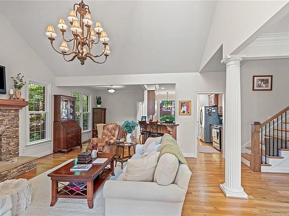 Stunning, custom brick home in picturesque Carrington Hills! Built by one of Randolph County's finest builders, this property has so much to offer. Stunning hardwoods throughout the main floor, vaulted ceilings in the living room and crown molding throughout. Main floor features 2 bedroom en suites, w/ spacious primary suite featuring double vanities, separate shower/tub, & a walk in closet. Open-but-defined living areas including vaulted living room with stone fireplace, additional sitting area, a spacious formal dining room, & high end kitchen featuring gas range, solid wood cabinets & eat-at bar. In addition to a spacious bedroom & bath, upstairs you'll find multiple flex spaces & incredible storage! The star of the show is the outdoor retreat featuring spacious brick & stone patios, meticulous landscaping & Koi pond, & stairs leading to an incredible covered area w/ an outdoor fireplace. Detached garage w/ finished bonus room and plumbing hookups. Incredible privacy & low taxes!