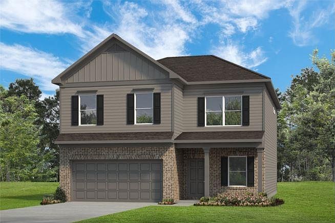 Move in Ready August 2024! The Harrington plan in The Duncan Farm community built by Smith Douglas Homes. Exquisite two-story plan with a welcoming wide entry leading to an open living concept, perfect for entertaining. Both the kitchen and family room live to the rear of the home with convenient access to the yard and covered patio from the kitchen area. Dream kitchen with upgraded 42" cabinets, granite counters, tile backsplash and a convenient mud room of the garage entry. Upgraded Vinyl plank floors throughout the main living area. Bedroom and full bath on main level. Upstairs you'll be amazed at the spacious owner's suite with a very large walk-in closet and dreamy owner's bath including an extra large shower and a linen closet. Three secondary bedrooms, a laundry room and full bath with double sinks and vanitites. Both stories have nine foot ceilings! Photos are representative of plan not of actual home being built. Ask about our seller incentives with use of preferred lender.