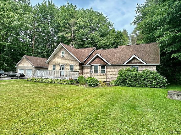 Country Cape Cod ready for its new owner! Nice spacious home with cathedral ceilings & nice layout. Large living room with pellet stove that the owners have used to heat the home. Two first floor bedrooms with full bath between them. The kitchen features loads of cupboard and counter space. Formal dining area. The kitchen island stays. Full bath off kitchen. Mud/laundry room has so much room for keeping things organized! Wait until you see the upstairs bedroom suite with what has been used as a nursery or could be a walk in closet or additional bedroom. Cute deck off the back of the house for this suite. Bathroom is half bath on one side and nice soaking tub on other side. Detached 2 car garage & over 2 acre lot. ***Seller has received multiple offers - seller is asking for all offers by 5:00 PM on July 15th***