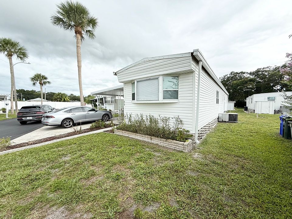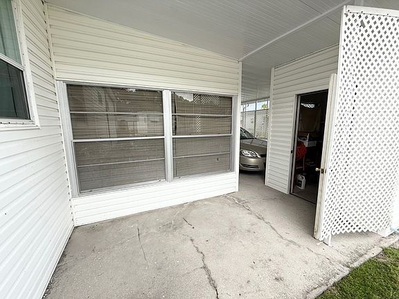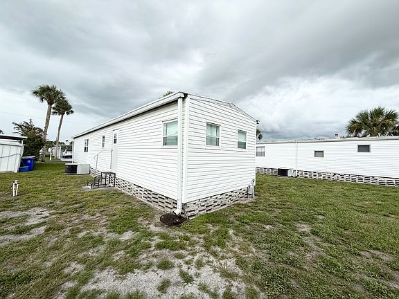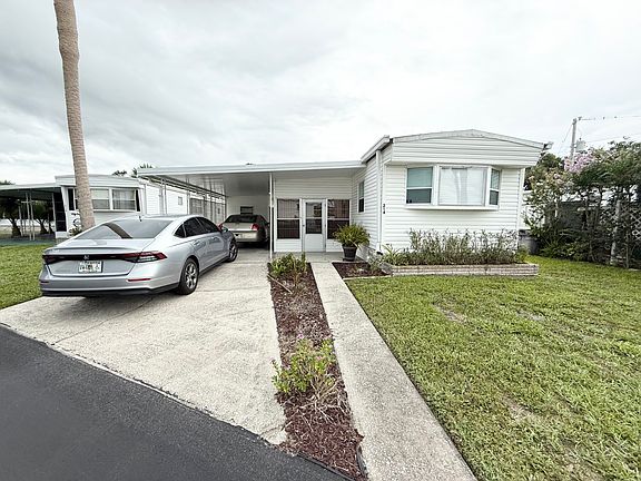 FULLY FURNISHED w/ exception of personal things and some decor. This home has been EXTREMELY WELL-MAINTAINED!! This beautiful and well-kept home is located in a wonderful and very well-maintained 55+ gated community with very friendly neighbors! The lot rent is only $711 per month starting Feb 2026 and includes water, lawn mowing and the use of the amenities! Some of the amenities include the use of heated pool, shuffleboard, bingo, billiards, darts, cards and arts and crafts just to name a few! The electric bill includes the sewer and trash/recycle pickup. This home has a central AC unit which runs very efficiently. The home was treated for termites in 2024. The attached carport has plenty of room to park your vehicles. At the back of the carport is a decent size shed to store your things. There is a small-covered patio at the front of the home where you can sit and enjoy a cup of coffee. Step into the Florida room which has a washer and dryer. This room is a great place to enjoy hanging out with friends, doing crafts or even use as a guest room when people come to visit. Enter the home from the Florida room and find the nice size kitchen at the front of the home. This home has lots of storage compared to most. The living room is centrally located in the home and as you head down the hallway toward the back of the home you will find a guest room along with the main bathroom which has a tub/shower combo. The master bathroom is located at the very back of the home and has plenty of built in storage along with a bathroom vanity. There is a door in the bedroom which opens up to the 1/2 bathroom w/ a stand-up shower and toilet. COME MAKE THIS HOME YOUR VERY OWN TODAY!!!