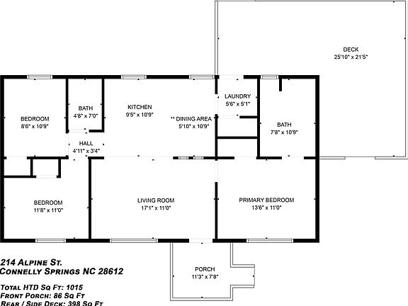 Inside, you’ll find updated flooring, a functional layout with approx. 1,015 sq ft, and a metal roof. The home runs on a well and septic system, offering self-sustained utilities and lower overhead.