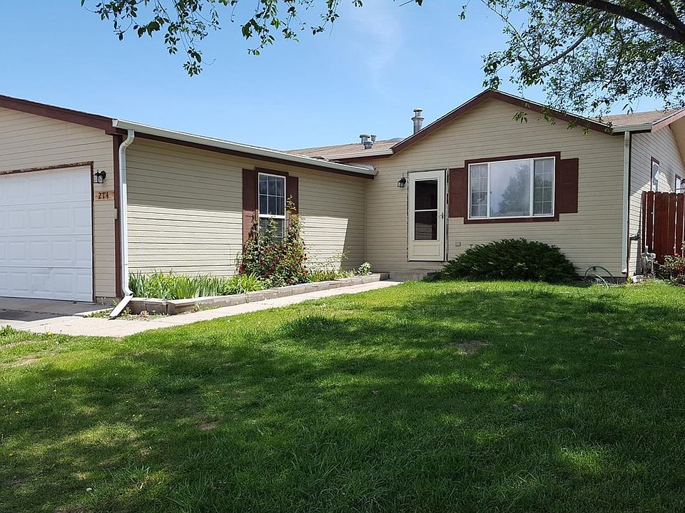 Move-in ready ranch home. Large living room with stepped ceiling & fan. Kitchen offers plenty of counter and cabinet space w/built-in pantry and all appliances including newer microwave. The master offers a luxurious 4-piece bath with extended vanity and tiled shower/tub. The 2nd & 3rd bedrooms are roomy and have built-ins. There is an evaporative cooler for hot summer days, an oversized 2-car garage & new hot water heater. Outside you will find a fire pit, stamped patio, garden area and fenced yard. Lovely home at a great price. Take a look!