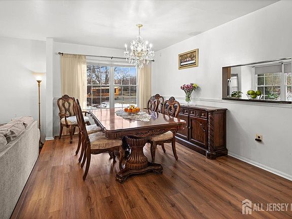 The sellers have requested that all offers be submitted by sunday,Jan 26,2025 at 5:00 PM. Welcome to this charming end-unit townhouse in the highly desirable Society Hill community! Offering the perfect blend of style, comfort, and convenience, this home is an exceptional opportunity for savvy buyers. The main level showcases a seamless layout, starting with an inviting hallway that opens into a bright dining room, accented by a sophisticated chandelier and large, picturesque windows overlooking the serene green space. The dining room flows effortlessly into a spacious living area featuring recessed lighting and views of the private patio and open lawns. The light-filled kitchen is both functional and elegant, offering ample cabinet storage, granite countertops, a stylish backsplash, and newer appliances. A sunny breakfast nook, complemented by a charming window seat and banquette, adds a cozy touch to this inviting space. Durable laminate and vinyl flooring enhance the main level with a blend of practicality and charm. Sliding doors from the living area lead to a private patio with two large storage rooms on either side, perfect for outdoor enjoyment and added storage. A nicely updated powder room completes this level. A solid oak refinished staircase leads to the second floor, where two generously sized bedrooms, bathed in natural light, await. Each bedroom features its own attached full bathroom for privacy and convenience. A dedicated laundry area, equipped with a newer washer and dryer, adds to the home's functionality.Residents of Society Hill enjoy exceptional amenities, including a pool, tennis courts, and a clubhouse. Ideally located in an award-winning Blue Ribbon school district, this home offers easy access to major routes like Route 1, Route 18, the NJ Turnpike, and I-95, as well as NYC transportation, shopping, and dining. Conveniently located school bus stops further enhance its family-friendly appeal. Don't miss the opportunity to own this spacious, end-unit townhouse in a prime locationit's ready to welcome you home!*Not allowed to be rented.