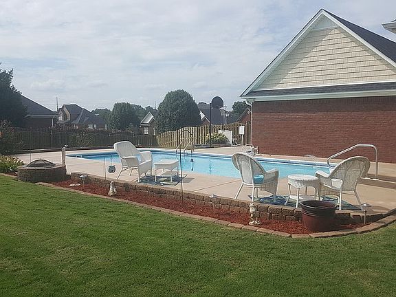 Ranch style brick home with attached two car garage , 5 bedrooms, 4 full baths with a fenced in back yard, Bermuda sod grass, covered back porch with in ground (16x32) salt water swimming pool and a detached two car garage. Granite counter-tops in the kitchen. New Vinyl Plank floors in two bedrooms. New Frig, Dishwasher, Oven. All GE products. New Rheem Hot Water heater.