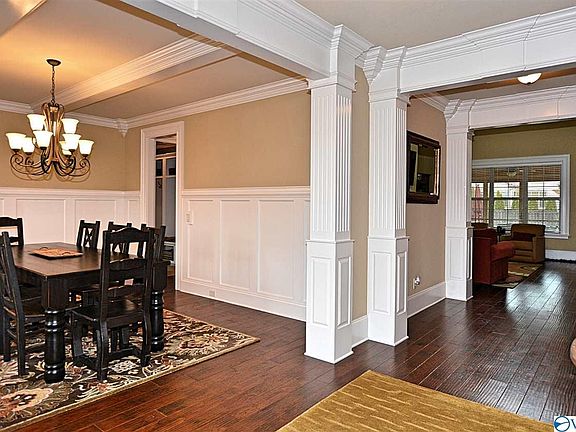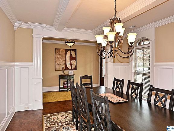 - RoomDiningRoomFeatures: Chair Rail, Wood Floor, Crown Molding, Coffered Ceiling(s)