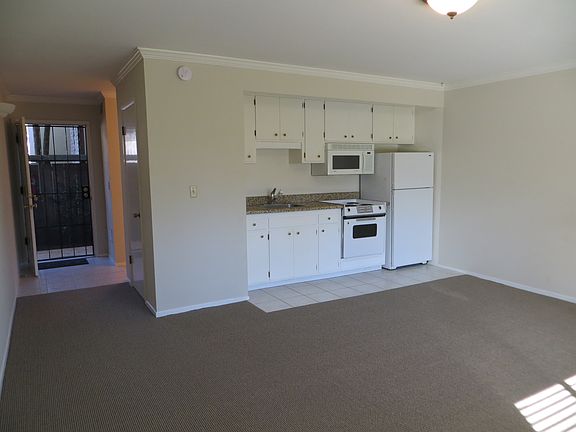 Nice ground level Studio Apartment available April. Located in coveted Gerstle Park Neighborhood. This boutique Building has only 10-studio units. -- Distinctive-- Close to town, calm friendly vibe and San Rafael Mediterranean climate with morning sun. This studio apartment has Granite counter tops in full Kitchen with lots of cabinet space, electric range, built-in microwave, and ample refrigerator. Quality carpet and tile flooring. Large shower/dressing area includes ample mirrored slider closets and large walk-in shower with seat (no tub). Locking screen door installed at entry for easy secure ventilation and light, double-pane windows for lower energy costs Window flower boxes add hominess and privacy. One off-street Parking Space included, washer/dryer on-site additional private storage unit, too. Sonic High Speed Fiber or Comcast/Xfinity ready This well-maintained building is 100% studio units--with many long-term residents. Designer colors and Tuscan wall out front bring added charm. The property has a friendly vibe & is surrounded by many single-family homes which adds to the peaceful, quiet environment. Recent structural retrofit completed for seismic safety. The Grounds include a garden space for restful retreat. Gerstle Park is a superb location. Walk to downtown San Rafael; transportation center thru the historical "Gerstle Park neighborhood", with its tree lined streets. Enjoy Downtown SR with the Rafael Theatre, restaurants, and Farmers Market. Close to Gerstle Park and Open Space. Great biking and walk-score is plus-plus-plus! Studio shown by appointment only. If you Drive-By 214 Bayview St Apt #3, please do not disturb the occupants. Thank you! Terms One-year lease minimum Credit Report with good Credit Score, income verification, personal and rental references, security deposit. $1,820 per month which includes water, garbage/recycle/sanitary sewer and one off-street parking space. Resident pays own electric, phone/tv-internet, Renter's Insurance. Security Deposit $ 1x Rent Cat okay with references / approval. This is a No Smoking / no flames /no incense-fragrance property.