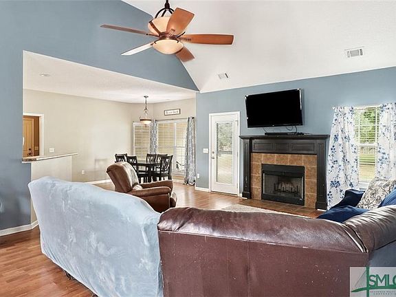 Welcome Home to 214 Beagle Street! Four bedrooms and two full bathrooms with the perfect, split bedroom floorplan & open concept layout for entertaining. The foyer opens up to large great room with cathedral ceilings, fireplace and wood flooring. The great room is open to the kitchen with peninsula bar, ample counter space, pantry and dining area. The spacious master bedroom with on-suite is separated from the other two guest bedrooms and full bathroom. The Bonus room / fourth bedroom is located upstairs. The covered back patio overlooks the spacious, fenced backyard... perfect for entertaining and play! Located in desirable Effingham County School District and convenient to Pooler, Savannah, Hunter AAF and Statesboro.