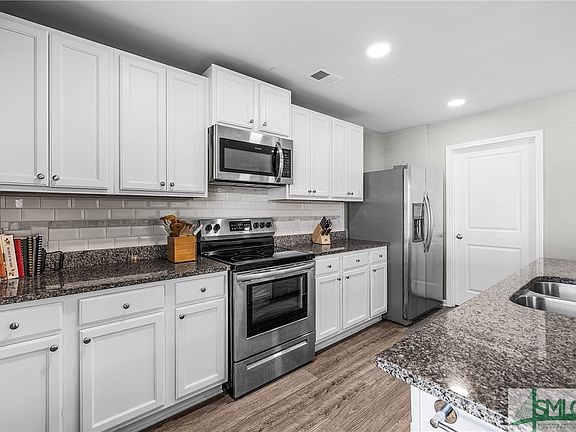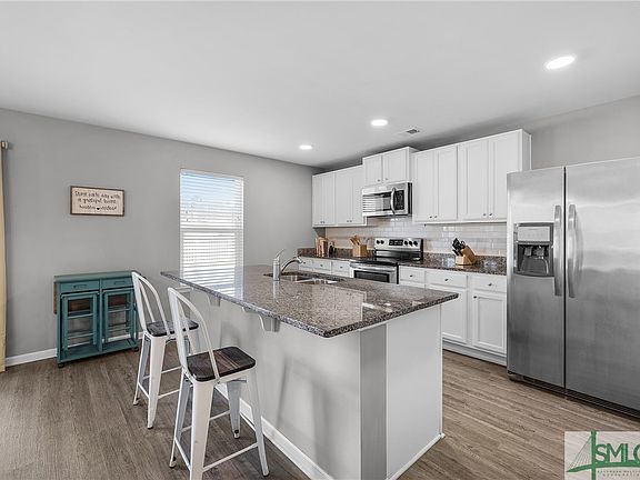 Discover 214 Bellflower Circle, nestled in the amenity-packed Park West community in South Effingham! This stunning home offers an open downstairs floor plan with luxury vinyl plank flooring and a flex room, perfect for entertaining. The kitchen boasts stainless appliances, granite counters, a spacious center island, chic cabinetry & ample storage. Relax on the front or back covered porch, with lagoon and fountain views from the private patio and spacious fenced yard. Upstairs hosts a cozy loft, all bedrooms and laundry room. The primary suite is a true retreat with a spacious walk-in closet and ensuite bathroom, featuring a garden tub, double sinks and separate shower. The community offers a club house with billiard, pool, playground, exercise facility, tennis courts, basketball courts, fire pit, sidewalks & more! Located with easy access to Pooler, Gulfstream, Savannah & more, all in the award winning South Effingham School District!