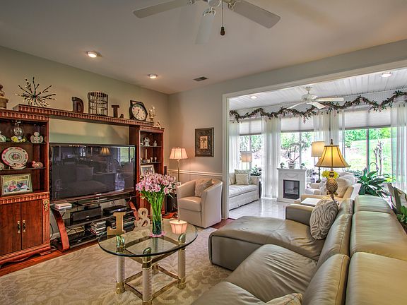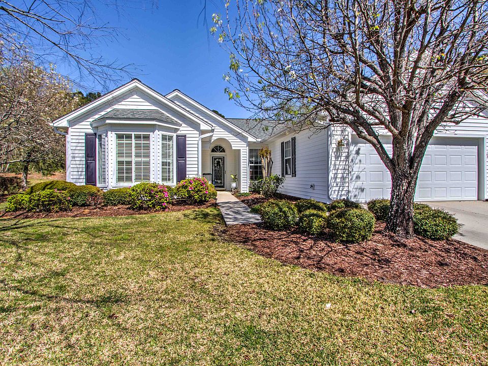 Tastefully appointed Hamilton/Jefferson conveniently located within the community on a cul-de-sac. From the smooth ceilings to the wood floors this open flowing floor plan is a delight. Kitchen w/granite countertops, breakfast bar, newer s/s appliances incl dbl & convection ovens, under cabinet lighting, soft close cabinet doors. Dining area w/oversized bay window looking out to backyard. Den w/solid dbl doors could be used as a 3rd guest BR; Carolina Room w/tile flooring; brick patio w/private backyard. Master suite w/bay window overlooking backyard, bath w/walk-in shower w/bench & raised vanity w/dual sinks. Guest BR w/bay window. Whole house water filter. Newer roof & HVAC