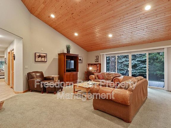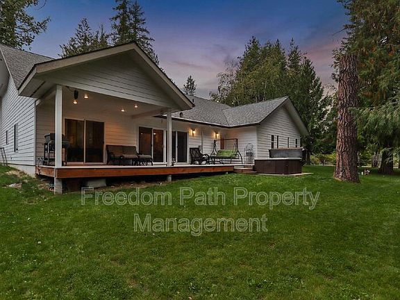 Showings start 8/10. Available Partially Furnished or Vacant. Discover elegant comfort in this exquisite custom-built home in Sagle. The stunning great room features soaring 20-foot wood ceilings, a floor-to-ceiling stone fireplace, and large windows that create an airy ambiance. With six quiet areas, the layout provides privacy while also encouraging gatherings. Step through the French doors onto a covered deck, ideal for barbecues and enjoying serene water views. Relax in the luxurious Paradise Suite with a jet tub or unwind in the outdoor hot tub. Cozy evenings by the impressive fireplace or curling up with a book offer the perfect retreat. The main floor boasts two bedrooms with private bathrooms, and a spacious bathroom with direct deck access for convenience after hot tubbing. All rooms are wheelchair accessible, and a large laundry room is conveniently located on the main floor. The kitchen features new appliances, a walk-in pantry, and a design that keeps you connected with family while cooking. Enjoy year-round comfort with new heating and cooling systems, and a gas boiler radiant in-floor heating. Above the garage, a versatile living area can serve as a teen retreat or office. The private dock is perfect for boating, fishing, and swimming in the protected channel. With easy access to Lake Pend Oreille and ample parkingincluding RV hookupsthis property is a haven for water enthusiasts. Explore the fenced forest area, perfect for kids and pets, or relax in the hammocks under the trees. Experience the ideal blend of comfort, convenience, and outdoor adventure! Water/Sewer(Home and RV)/Trash is $230 per month. All Freedom Path Property Management residents are enrolled in the Resident Benefits Package (RBP) for $55.00/month which includes liability insurance, credit building to help boost the resident's credit score with timely rent payments, up to $1M Identity Theft Protection, HVAC air filter delivery (for applicable properties), move-in concierge service making utility connection and home service setup a breeze during your move-in, our best-in-class resident rewards program, on-demand pest control, and much more! Ask us about our Deposit Waiver Program. Pet Details: No Pets except ESA and Service Animals