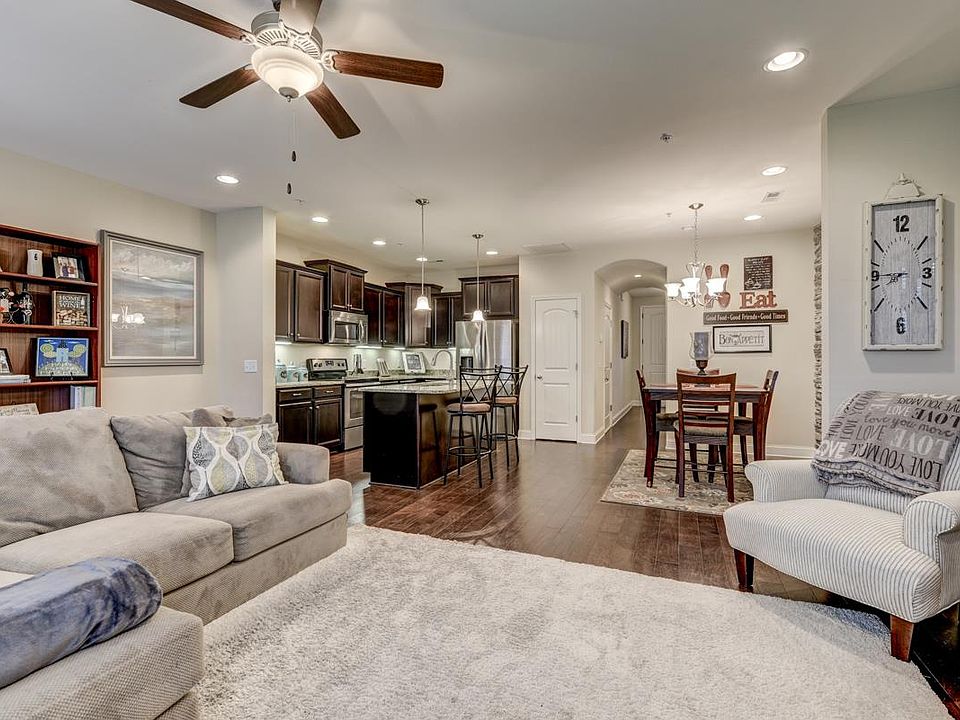 Welcome home! This 3 bed/2.5 bath townhouse is ready for you to make it your next home! Boasting an open floorplan on lower level with hardwood floors, upgraded decorative rock wall, stainless appliances, granite countertops and a covered back patio, it is cozy yet a great entertaining space! Neighborhood offers dog park and walking trails, or explore and walk to Public Library, Greenway, or Streets of Indian Lake! Don't miss this one!