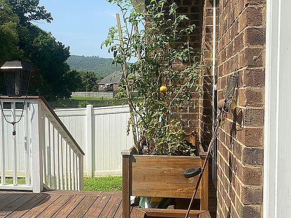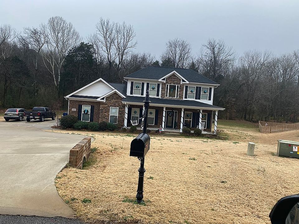 This custom built home is designed for southern style with a Mountain View! The welcoming front porch has classic columns and a swing. The exterior is brick with stone accents. The foyer has a soaring ceiling with a huge window for lots of light. The primary bedroom is on the first floor. Long oversized closet. Bath has double vanity, tiled walk-in shower and jetted tub. The kitchen has granite countertops, stainless appliances, and a gas oven. Walk-in pantry has a cute, glass door! The family room has an open floor plan with a gas, stacked stone fireplace. Beautiful crown molding throughout the house. Office/flex room, dining room, half bath and laundry room also located on first floor. Two bedrooms upstairs each have their own attached bathrooms and walk-in closets. There is a spacious deck on the back with a beautiful view of Monte Sano mountain. The large backyard backs up to the woods. It’s private and partially fenced for pets. Additional storage above the two car garage and a storage shed in back. Tankless water heater. Minutes to downtown Huntsville, Redstone Arsenal and local shopping, restaurants and entertainment.