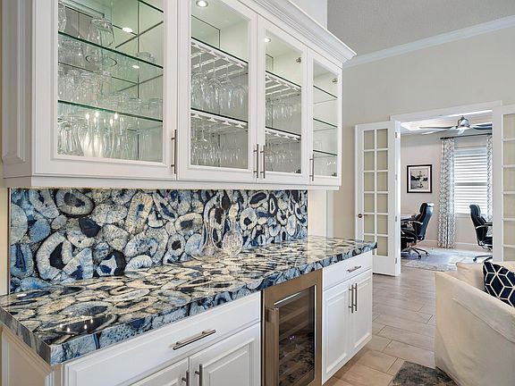 Enjoy amazing views across a large lake to a preserve on one of the finest homesites in Sonoma Isles. This 2020 Divosta built home boasts custom features like: impact glass windows and doors, electric blinds on all windows, a three-car air conditioned garage, custom built-Ins in the office, bar, and great room, electric screens for the covered patio area, summer kitchen with BBQ, refrigerator, ice maker and sink, custom landscaping, pool, spa, AV system, an extra full-size refrigerator in the laundry room, and a back-up generator. Sonoma Isles has wonderful amenities like 24/7 gated security, a community club house with meeting spaces, fire pit, tennis courts, playground, and more. Located in the heart of Jupiter, your family will benefit from ''A'' rated schools.