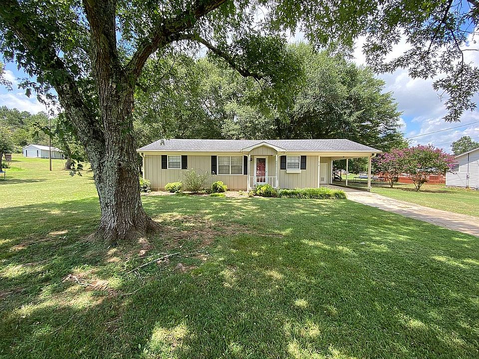 Welcome to country living. This precious two bedroom, one bathroom ranch style home features two living areas with a beautiful brick fireplace, built in bookshelves, exposed beams, new LVP flooring throughout, new carpet in the bedrooms. In addition to, this home has a carport, storage closet, large laundry room, L shaped living room/dining room/kitchen, LARGE flat yard, a storage building...too many darling features to list! This beauty will not last long. Schedule your appointment today!
