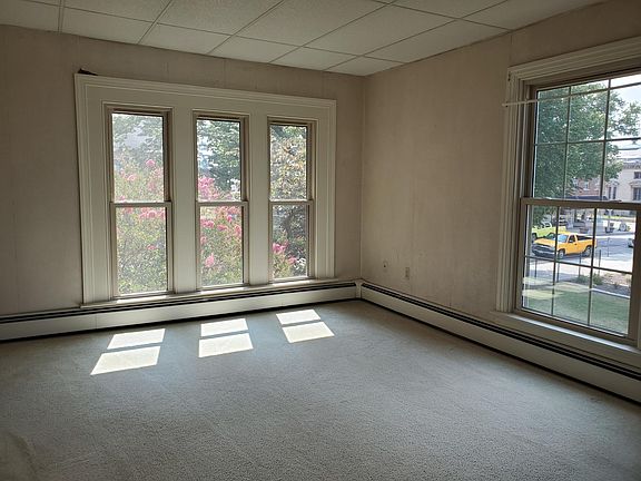 Very large rooms. Rent includes heat and all utilities except personal electricity. Off-street parking in private lighted lot. Snow removal and lawn care provided. Brand new windows throughout. There is an open air porch and an enclosed sun porchoff the bedroom. This is a secure,private unit above a dental office in a well maintained civil war area building. Due to the proximity to the health care facility we are seeking a single,responsible tenant who desires longterm tenancy in a friendly neighborhood Single tenant with no pets is required