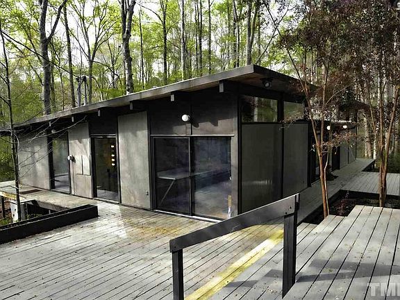 Beautiful tranquil rural setting in the trees. Walking distance to Jack Smith Park and Cary Dog Park convenient to Wake Med Cary, food stores. New roof, Entertain off the deck that is attached to house & studio with half bath, washer/dryer, baseboard heat deck wraps around the house. Fireplace focal point when entering home with beautiful views full glass sliding doors. Split bed rooms master suite on left step out onto deck and enjoy the views on you 1.83 acre oasis in the trees.