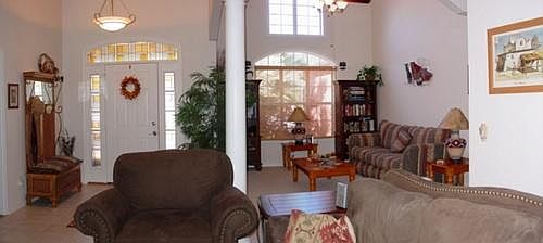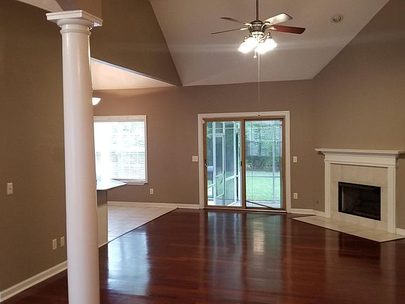 A nice spilt floor plan with a great room with vaulted ceilings, dining room and kitchen between the MB and 2nd and 3rd BR. MB has an on-suite dual vanity with standalone glass shower and a garden tub, water closet and walk in closet. Granite countertops in the kitchen, with Spanish tile and cherry hardwood floors for the main living area and bathrooms. Bedrooms are carpeted. Screened in rear patio with a pergola and a lagoon. Double door GE refrigerator included. Four person Jacuzzi within the screened in porch. Community Pool is a short walk three houses away. Two car attached garage with attic for extra storage. AC Condenser, dishwasher, and hot water heater were replaced recently. Honeywell digital thermostat with programmable schedule. Ceiling fans in every room including the screened in porch. Exterior was painted in October. Alarm system installed will require activation. Tenant responsible for all utilities and small insect pest control