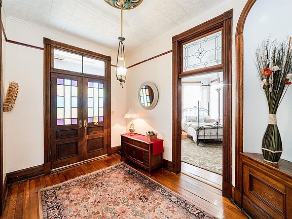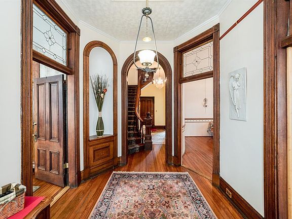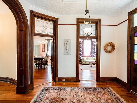 One of the only true Queen Anne style homes in Lynchburg, the Henry McWane House is situated in the revitalized prime Downtown neighborhood of historic Daniels Hill on a brick street. The home welcomes you into the foyer where the beautiful original unpainted wood work including archways, transoms, and staircase welcome you. Tall ceilings and large windows make this historic home much brighter and lighter than most. First floor features a great master bedroom option or guest room with renovated bathroom attached. Not to be missed are the many antique light fixtures and plaster ceiling surrounds, as well as the unique woodwork in each room. Home price reflects the need for you to customize your own kitchen in what is a perfect bright space for your culinary adventures. The backyard is a TRUE gem downtown, with it being entirely fenced, with small fish/duck pond, chicken/duck coop, garage workshop, large pea gravel drive and a vast array of plants that are just starting to emerge.